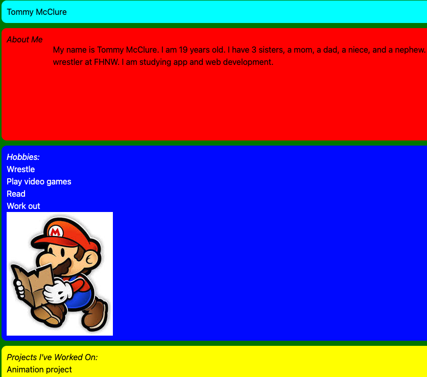 Portfolio 1.0This is my first portfolio page. I designed it my first year at Fort Hays Tech Northwest.